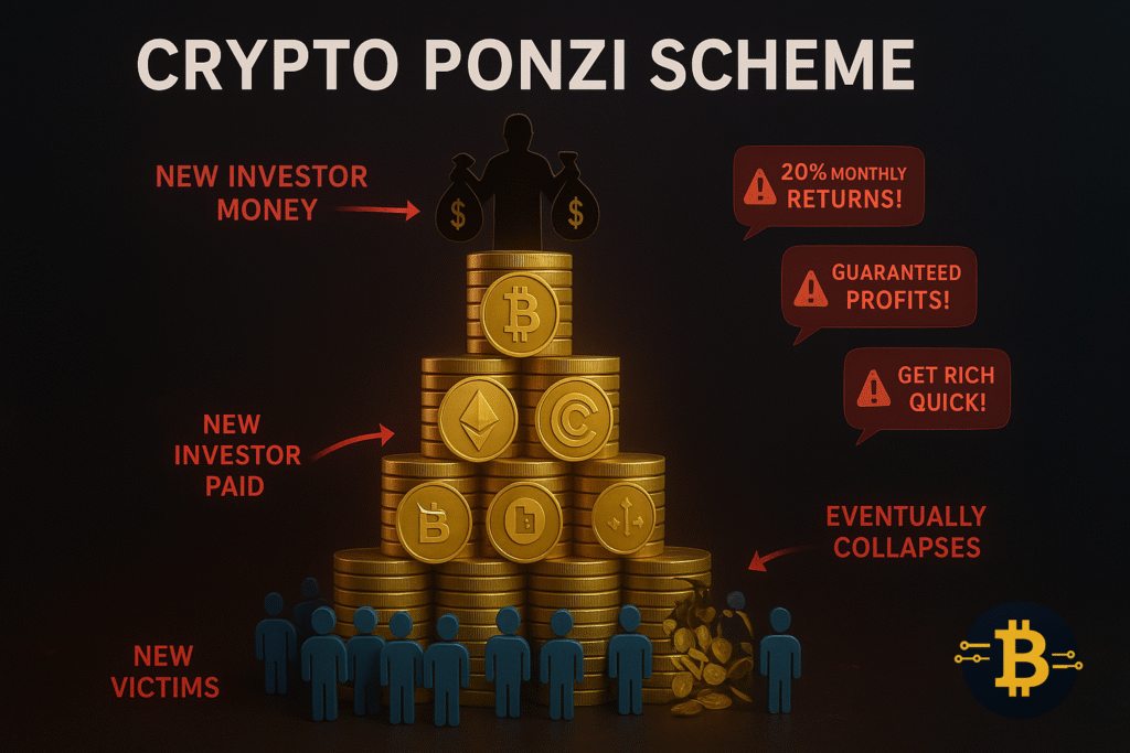 If someone promises to double your crypto or guarantees 20%+ monthly returns, you’re looking at a crypto investment scam. These are digital versions of classic Ponzi schemes, where early investors are paid with money from new investors until the whole thing collapses.