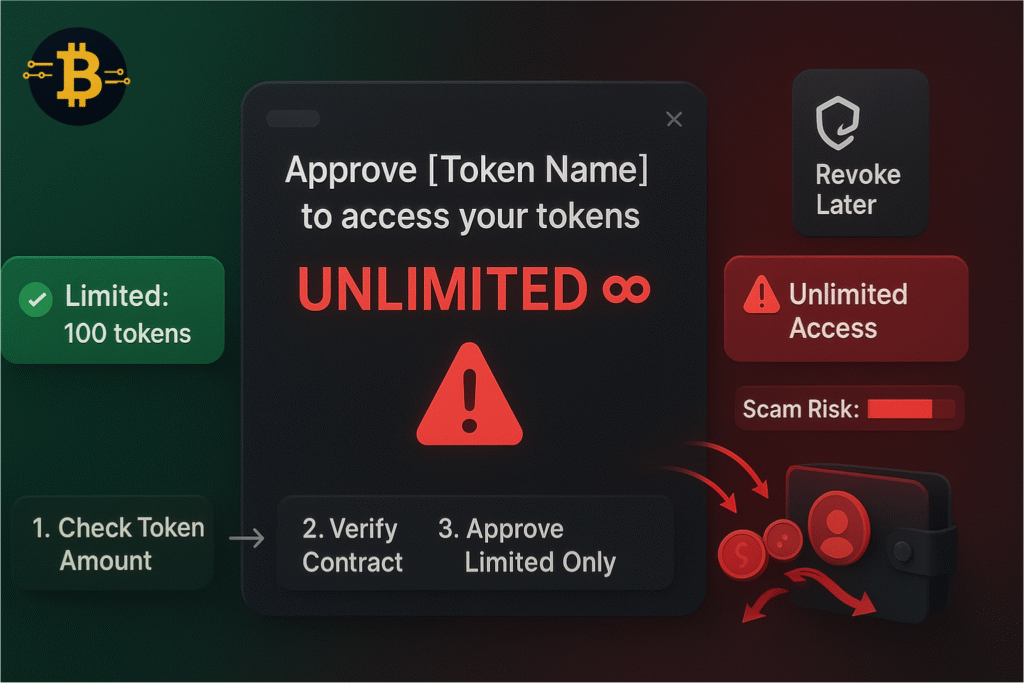 - Wallet approval requests for unlimited spending – Always check what permissions you’re granting. Unlimited approvals let scammers drain your wallet repeatedly.